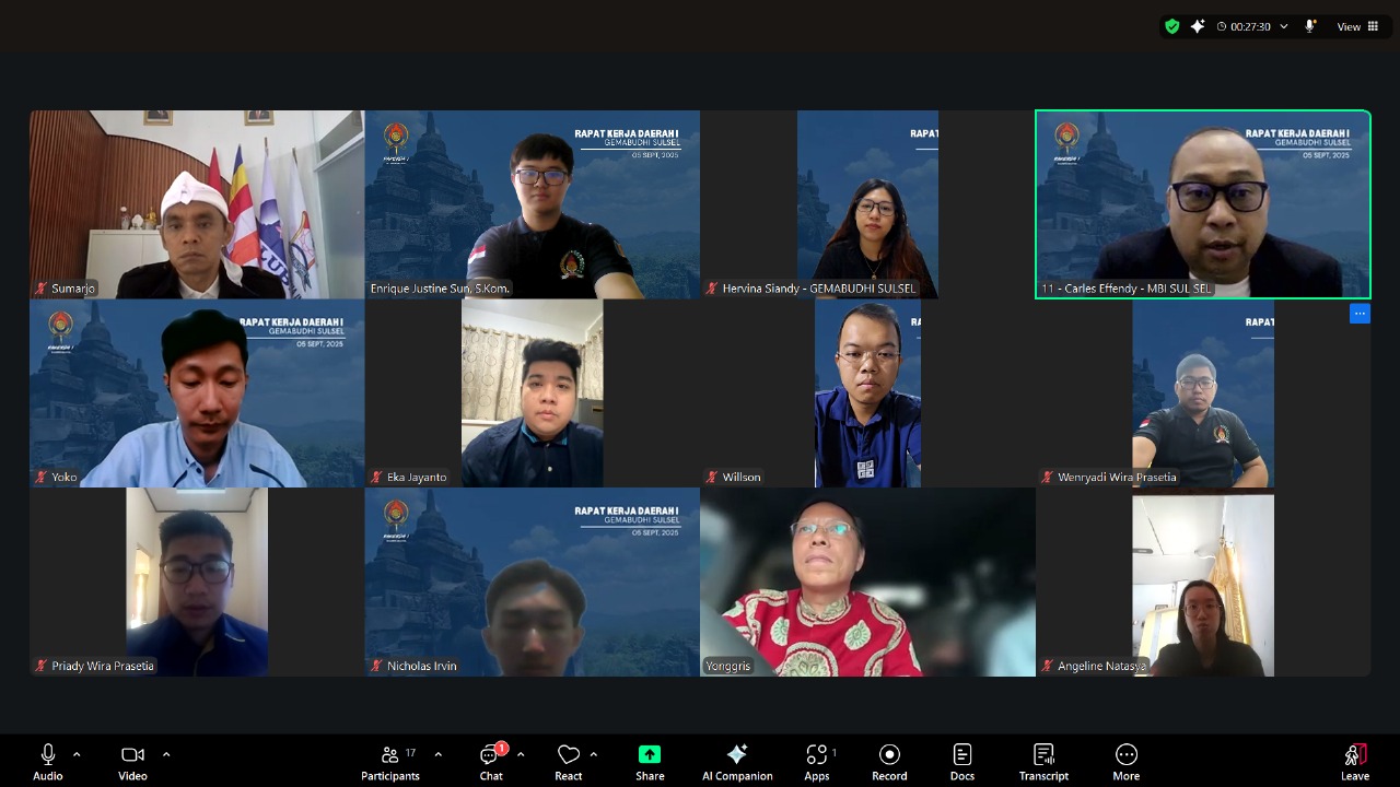 KabarIndonesia.id — Makassar, 5 Oktober 2025, Di tengah semangat kebersamaan dan sinar sore yang teduh, aula kegiatan online GEMABUDHI Sulawesi Selatan dipenuhi semangat muda yang menyala. Generasi Muda Buddhis Indonesia (GEMABUDHI) Provinsi Sulawesi Selatan menggelar Rapat Kerja Daerah (RAKERDA) I, sebuah momentum penting dalam perjalanan organisasi untuk merumuskan arah baru gerakan pemuda Buddhis di era modern.