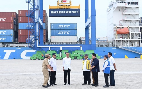 “Makassar New Port ini adalah terbesar setelah Tanjung Priok. Kedalamannya 16 meter, juga termasuk pelabuhan terdalam yang sangat baik untuk bersandarnya kapal-kapal besar untuk mengangkut kontainer,” ucap Presiden.