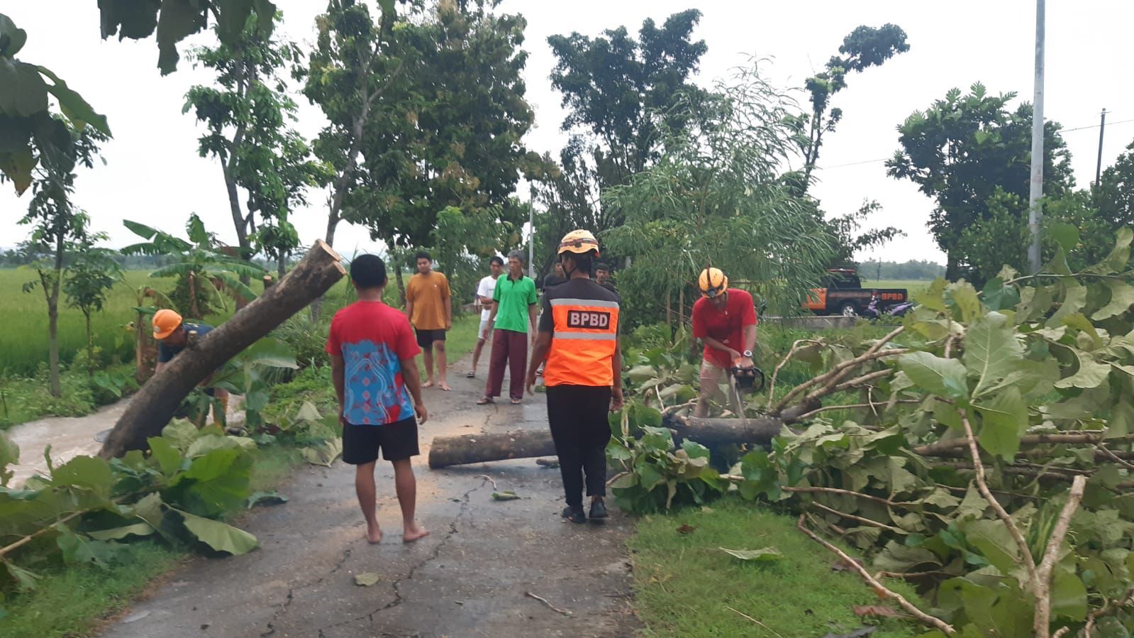 BPBD Kabupaten Sragen terus lakukan upaya pembersihan pohon tumbang dan asesmen terhadap warga terdampak.