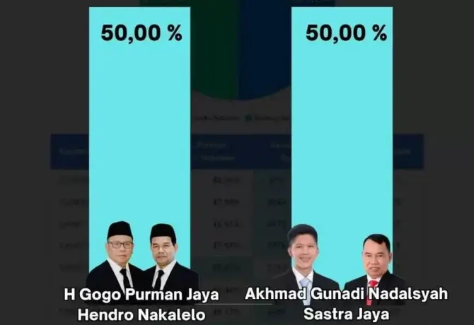 Masing-masing paslon ini memperoleh 50% suara, yang menunjukkan persaingan yang sangat ketat di antara keduanya.