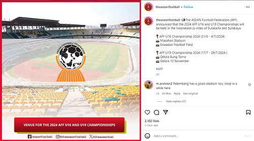 “Asosiasi Sepak Bola ASEAN/ASEAN Football Federation mengumumkan Piala AFF U-16 dan U-19 2024 akan dihelat di Indonesia di Kota Surakarta dan Surabaya,” unggah @theaseanfootball pada akun instagramnya.